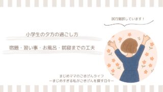 子育て 小学生の夕方の過ごし方|宿題・習い事・お風呂・就寝までの工夫 小学生の夕方は宿題・習い事・お風呂・就寝でバタバタ。我が家の夕方ルーティンを紹介。ルールを決めてごきげんに過ごす工夫です。 2025.09.23 子育て