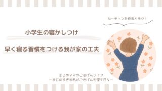 暮らし 小学生の寝かしつけ|早く寝る習慣をつける我が家の工夫 はじめに小学生になると、寝かしつけは一気に難しくなります。宿題や習い事、ゲーム、テレビ…やることが増えて、つい寝る時間が遅くなりがち。でも睡眠不足は、朝の不機嫌や集中力の低下、体調不良にもつながります。わが家は学校までの通学に30分歩く必要... 2025.09.26 暮らし
